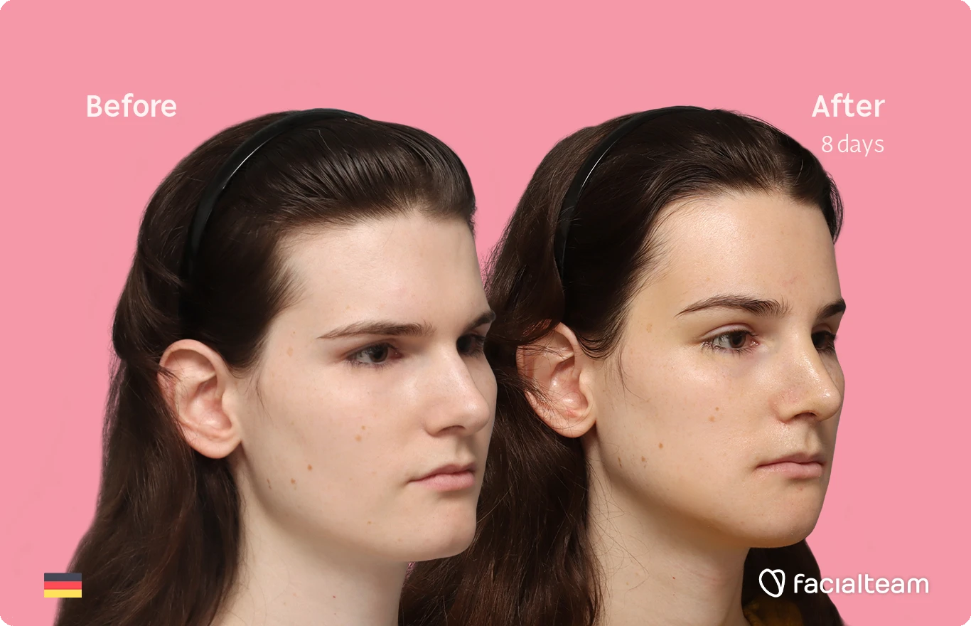 Lena E., eine 31-jährige Frau aus Deutschland, unterzog sich bei Facialteam in Marbella einer Gesichtsfeminisierungsoperation, einschließlich Stirnfeminisierung, Rhinoplastik sowie Kiefer- und Kinnkonturierung. Die Vorher-nachher-Bilder, die eineinhalb Jahre nach der Operation aufgenommen wurden, zeigen die langfristigen Ergebnisse ihrer Transformation. Nach abgeschlossener Heilung wirken ihre Gesichtszüge natürlich ausgewogen, verfeinert und harmonisch. Lenas Fall zeigt, wie sich die Ergebnisse der Gesichtsfeminisierungschirurgie mit der Zeit optimal entfalten und dauerhaft zur Geltung kommen.