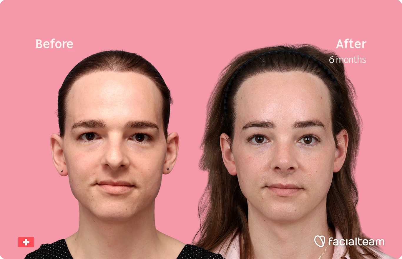 Lilia Nea, eine 36-jährige Frau aus der Schweiz, unterzog sich bei Facialteam in Marbella einer Gesichtsfeminisierungsoperation, die eine Stirnfeminisierung und eine Rhinoplastik umfasste. Im Rahmen ihres umfassenden Behandlungsplans erhielt sie außerdem Botox als ergänzende Behandlung, um die Gesichtsharmonie und Ausdruckskraft zu verbessern. Die Vorher-nachher-Bilder, die sechs Monate nach dem Eingriff aufgenommen wurden, zeigen verfeinerte und natürlich wirkende Ergebnisse mit ausgewogenen Gesichtskonturen und einer glatten Stirn. Lilias Fall zeigt, wie die Kombination aus chirurgischen und nicht-chirurgischen Techniken subtile, aber wirkungsvolle Veränderungen bewirken kann, die eine selbstbewusste, weibliche Identität langfristig unterstützen.